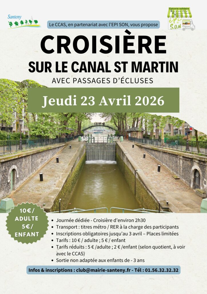 Le CCAS de Santeny, en partenariat avec l’Epi Son, vous invite à passer un après-midi au fil de l’eau, à la découverte des écluses et du Canal Saint-Martin.